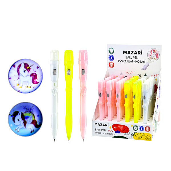 Ручка шар. автомат. 0,7мм, синий, ассорти корп., проектор "Lamp Unicorn" M-7882-70 MAZARI