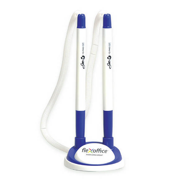 Ручка шар на липучке Flexoffice "Smart" с подставкой, 2 шт, синяя, корпус белый 0,7мм FO-PH01