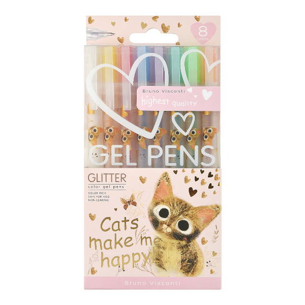 Набор гелевых ручек Bruno Visconti "GLITTER. МИЛЫЙ КОТИК" 8шт/8цв, 0,7мм 20-0369