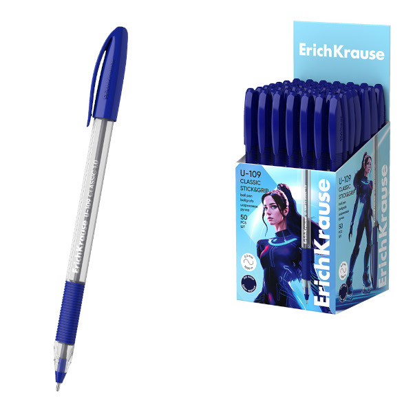 Ручка шар. масл. осн. 1,0мм, синий, игольч., прозрач. корп. "U-109 Classic Stick&Grip" 47574 Erich K