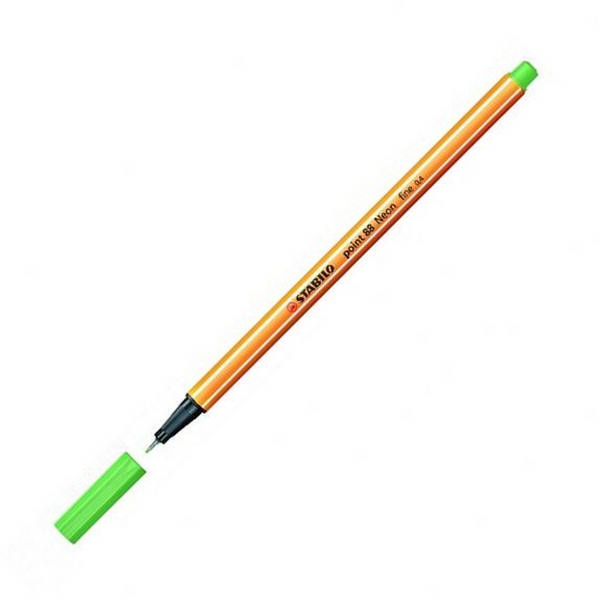 Ручка капиллярная 0,4мм, зеленый неон, корп. оранж. "Point 88" 88/033 Stabilo