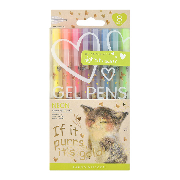 Набор гелевых ручек Bruno Visconti "NEON.МИЛЫЙ КОТЕНОК" 8шт/8цв, 0,5мм 20-0365
