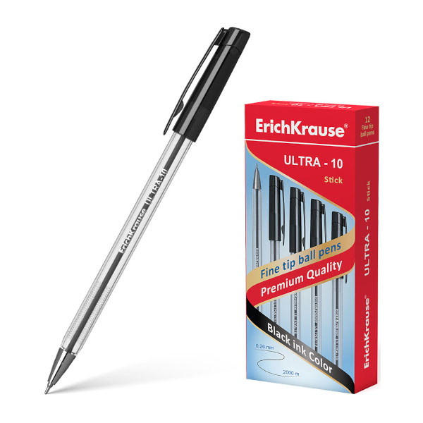 Ручка шар. масл. осн. 0,7мм, черный, игольч., прозрач. корп. "ULTRA L-10" 13874 Erich Krause