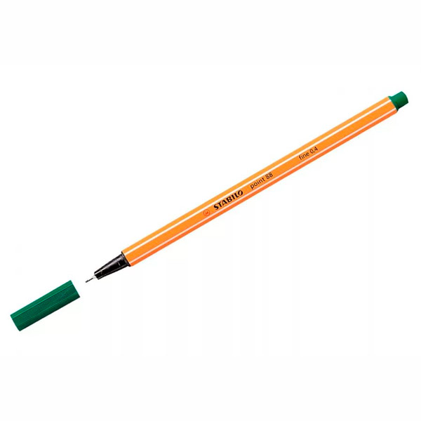Ручка капиллярная 0,4мм, св.зеленый, корп. оранж. "Point 88" 88/36 Stabilo