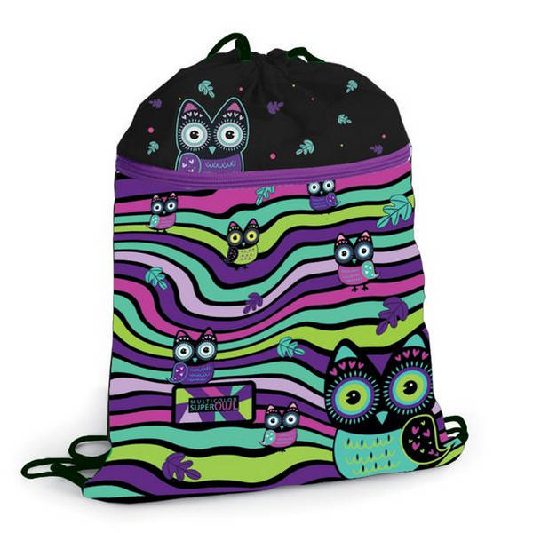 Сумка для обуви Hatber "Цветные совы" 37*47см, черный с цветн. рис. NMn_81013