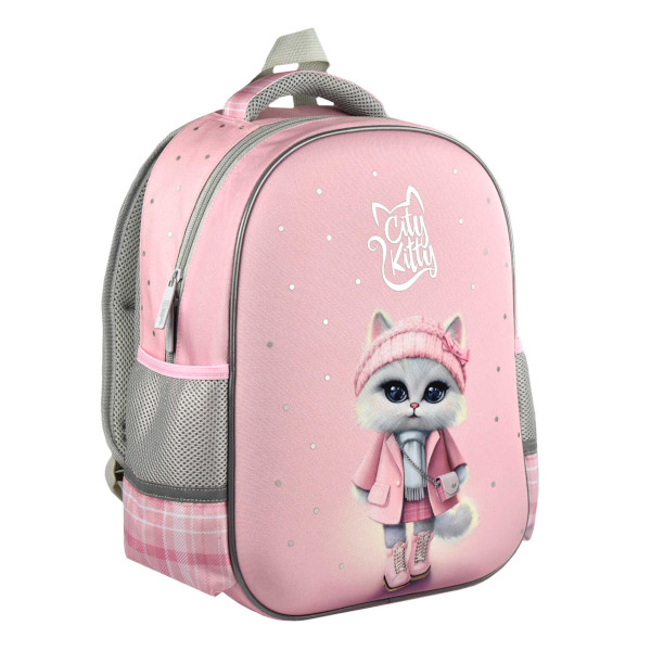 Рюкзак Феникс+ "Кошечка в пальто" 1отд., 2карм., полиэстер/EVA, 37,5*27,5*14,5см 68232