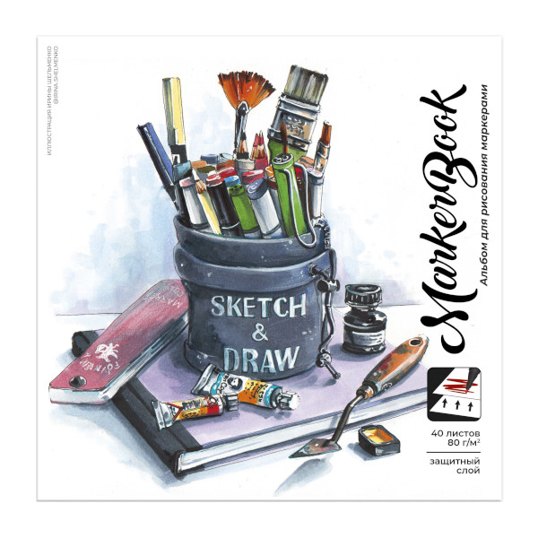 Скетчбук для маркеров 195*195мм 40л, 80г/м2, склейка "Набор художника" 61712 Феникс+