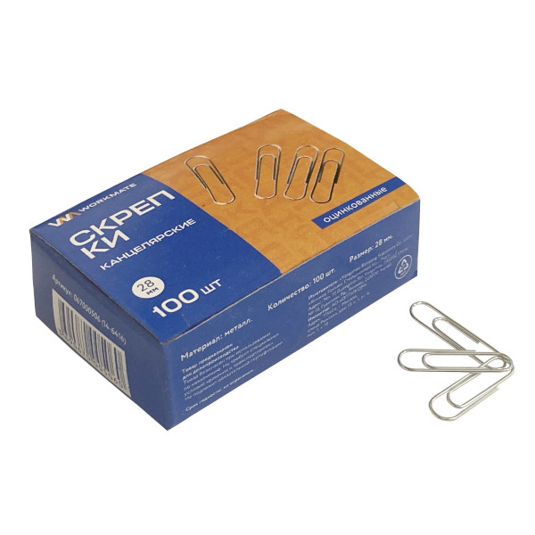Скрепки 28мм Workmate овальные, оцинкованные, в карт.уп. (100шт) 14-6416