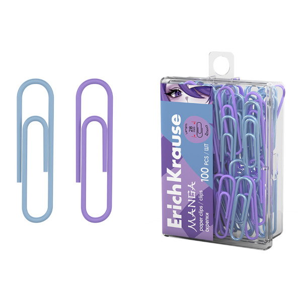 Скрепки 28мм Erich Krause "Manga" овальные, цветные, в пластик.уп. (100шт) 62052