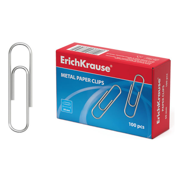 Скрепки 50мм Erich Krause овальные, оцинкованные, в карт.уп. (100шт) ЕК7857