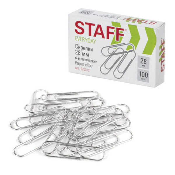 Скрепки 28мм Staff "Everyday" овальные, без покрытия, в карт.уп. (100шт) 220012
