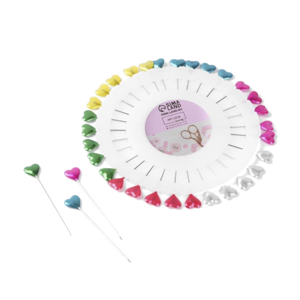 Булавки одностержневые Арт Узор "Сердце" 55мм, цветные, блистер (30шт) 600392