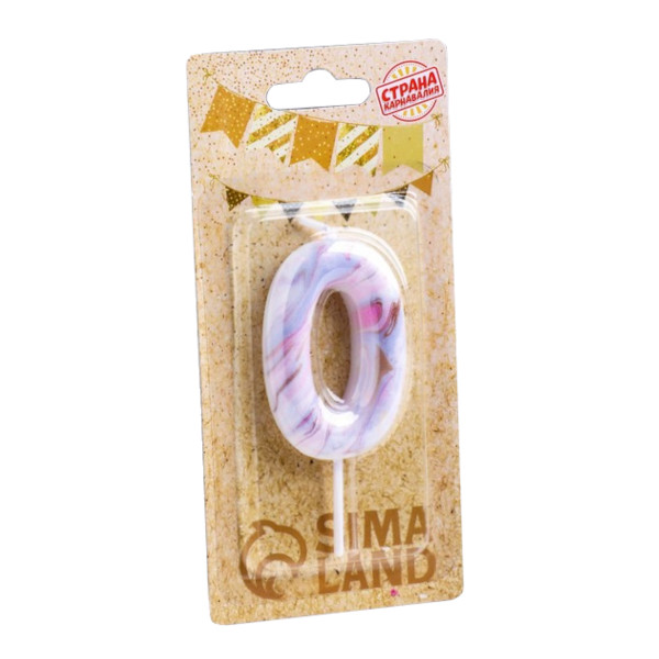 Свеча для торта "Цифра 0. Белый мрамор" 8см 6990829 Страна Карнавалия