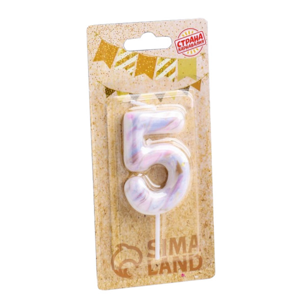 Свеча для торта "Цифра 5. Белый мрамор" 8см 6990834 Страна Карнавалия