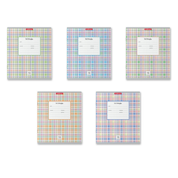 Тетрадь 18л А5+ линейка "Optima. Новая шотландка" картон, ассорти 58218 Erich Krause