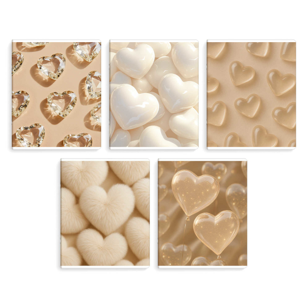Тетрадь 48л А5+ клетка "Бежевые сердца" картон, ассорти 70932 Феникс+