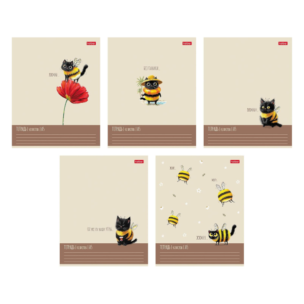 Тетрадь 48л А5 клетка "Жж-мяу" картон, ассорти 48Т5тВ1 Hatber