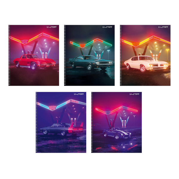 Тетрадь 80л А5 клетка/гребень "Авто в неоне" картон, ассорти ТСЛ808802 Listoff