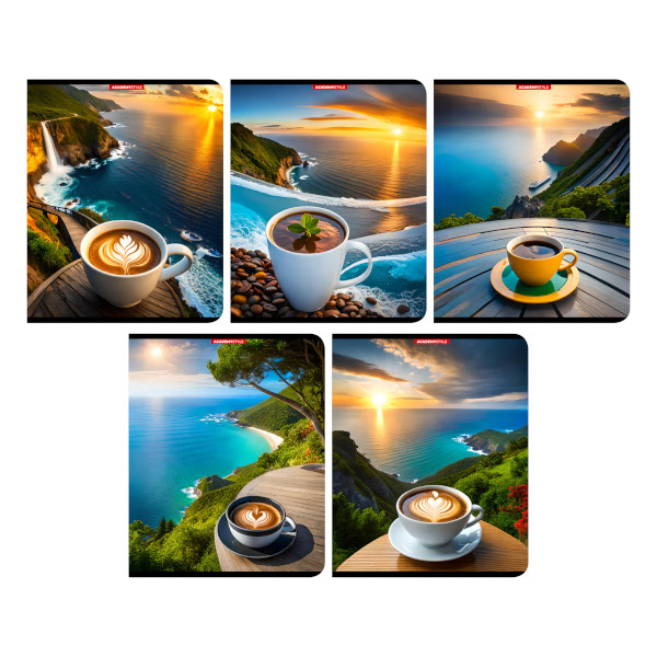 Тетрадь 96л А5 клетка "Чашка кофе" картон, ассорти 14142/5 Academy style