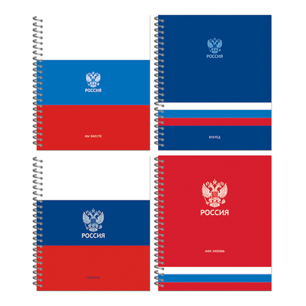 Тетрадь 96л А5 клетка/гребень "Россия" картон, ассорти 21с18-96 Полином