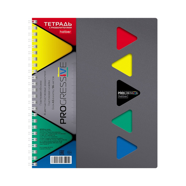 Тетрадь 96л А5 клетка/гребень "Progressive Metallic" пластик, серый, 4разд. 96Т5В1гр_03414 Hatber