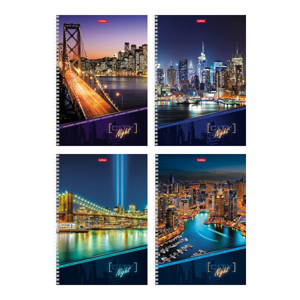 Тетрадь 96л А4 клетка/гребень "Ночной город" картон, ассорти 96Т4вмВ3гр Hatber