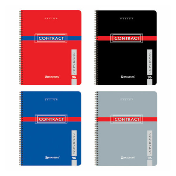 Тетрадь 96л А5 клетка/гребень "Contract" картон, ассорти 400527 Brauberg