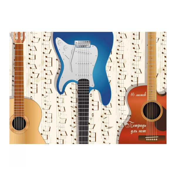 Тетрадь для нот горизонт. 16л А4 "Гитары" картон ТН16114 Unnika Land