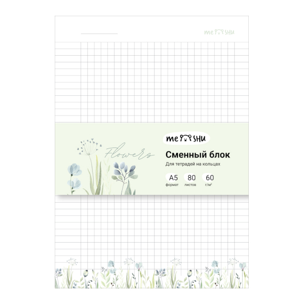 Сменный блок для тетрадей на кольцах А5 80л, клетка, белый "Flowers" MS_57267 MESHU