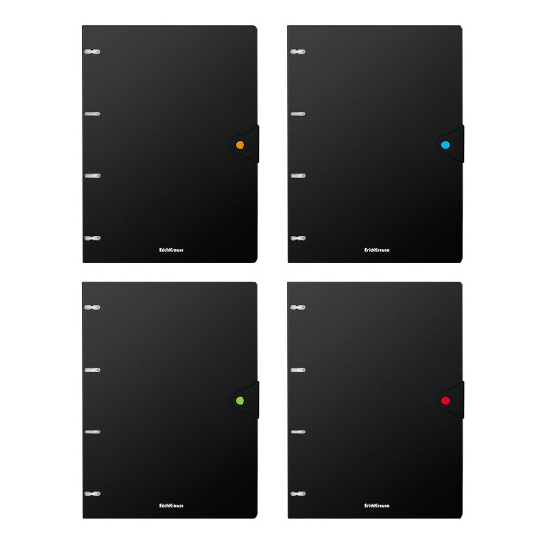 Тетрадь 80л А4 клетка на кольцах "Accent" пластик, черный, кнопка 51430 Erich Krause