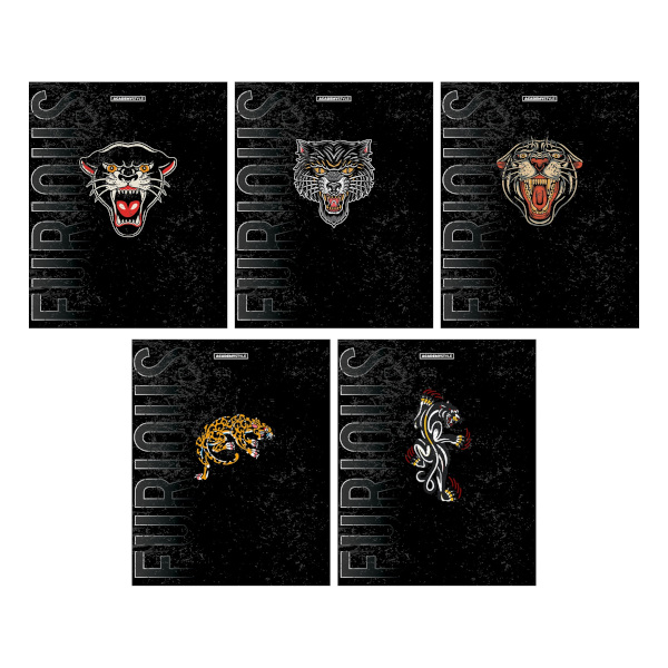Тетрадь 48л А5 клетка "Дикие кошки" картон, ассорти 14068/5 Academy style