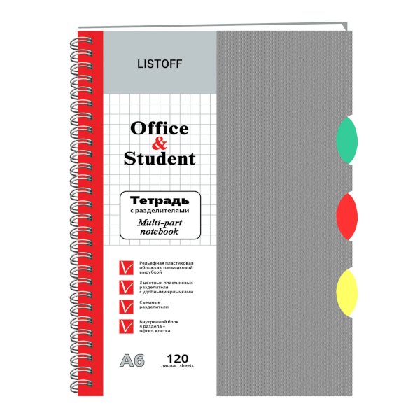 Тетрадь 120л А6 клетка/гребень "Серая" пластик, раздел. ТПР612037 Listoff