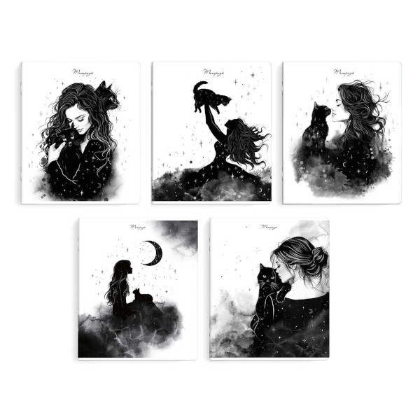 Тетрадь 48л А5+ клетка "Девушка с черным котом" картон, ассорти 68549 Феникс+
