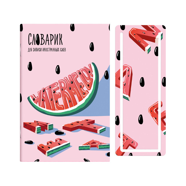Тетрадь-словарик Для записи иностранных слов А6 32л "Арбузный взрыв" картон, закладка 58761 Феникс+