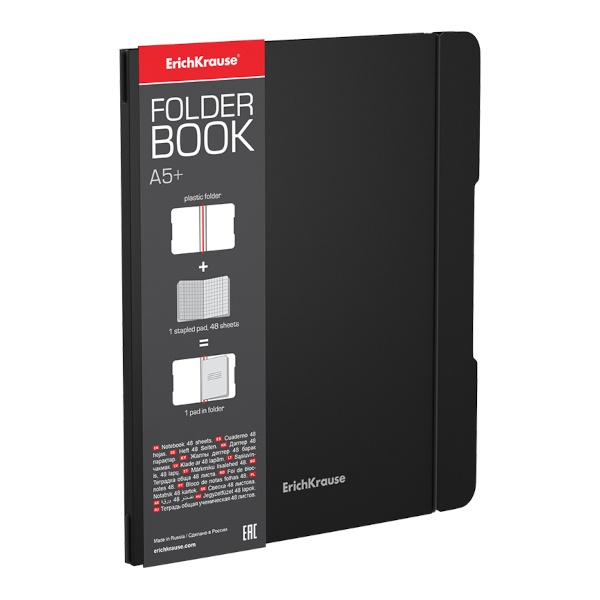 Тетрадь 48л А5+ клетка "FolderBook Classic" съем. пластик, черный 48016 Erich Krause