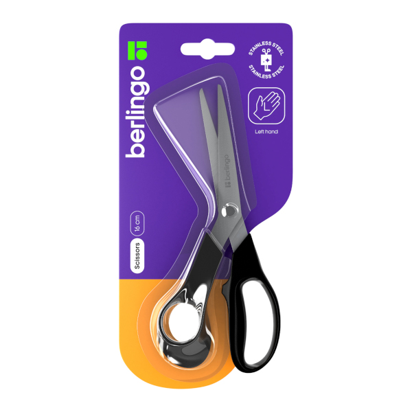 Ножницы для левшей 16см Berlingo "Left Hand" асимметр., пластик, черный DNs_16005