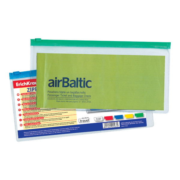 Папка на молнии "ZIP" 130*253мм, пластик, 140мкм, ассорти "Travel" 4563 Erich Krause