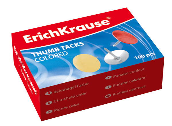 Кнопки канцелярские 10мм цветные, в карт.уп. (100шт) ЕК24876 Erich Krause