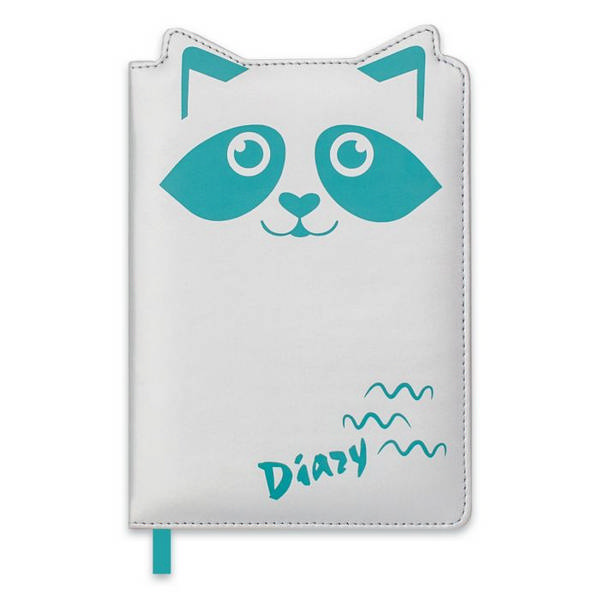 Записная книга А6+ 96л "Енот" без линовки, сшивка, тв.обл., иск.кожа, серебро/бирюза 47475 Феникс+