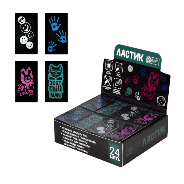 Ластик Феникс+ "Стильный черный" прямоуг. 45*25*10мм, термопласт. резина, ассорти 60516