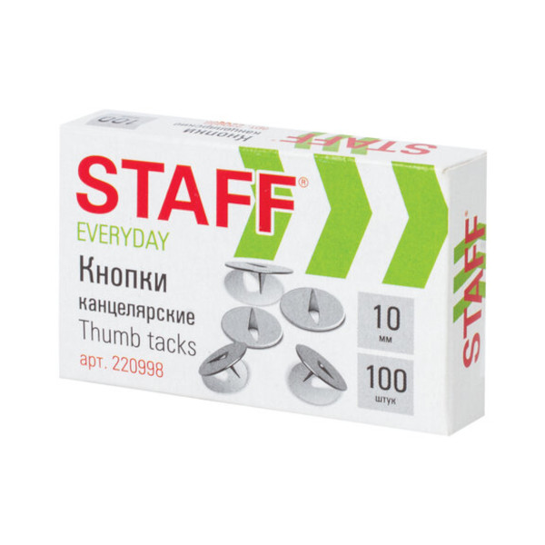 Кнопки канцелярские 10мм никелированные, в карт.уп. (100шт) 220998 Staff