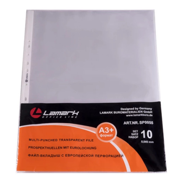 Файл (мультифора) А3 50мкм прозрачный, матовый SP0055 (уп 10шт) Lamark упаковка