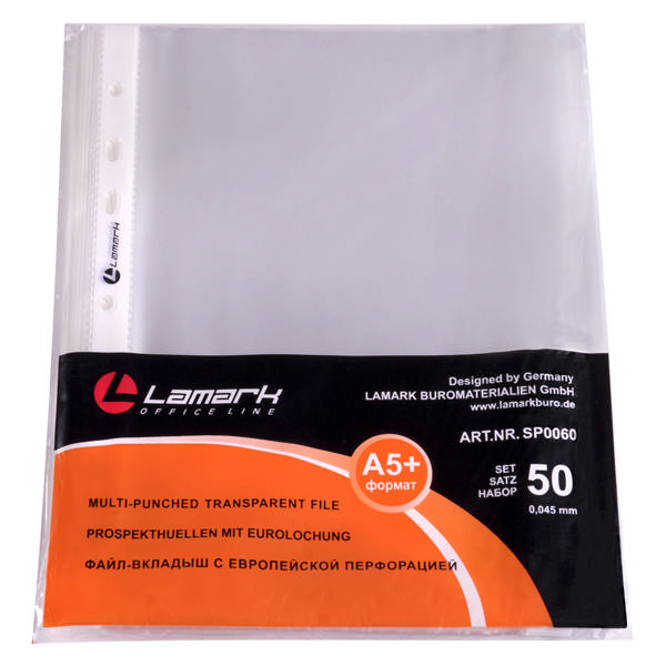 Файл (мультифора) А5+ 45мкм, прозрачный, матовый "Яичная скорлупа" SP0060 (уп 50шт) Lamark упаковка