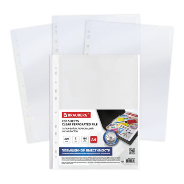 Файл (мультифора) А4 180мкм, прозрачный, глянцевый, расширяющийся 224315 (уп 5шт) Brauberg упак