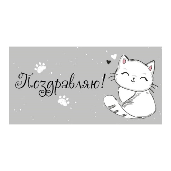 Открытка-конверт для денег "Поздравляю! Белая кошечка" 8,5*16,4см 1-04-0436 Optima