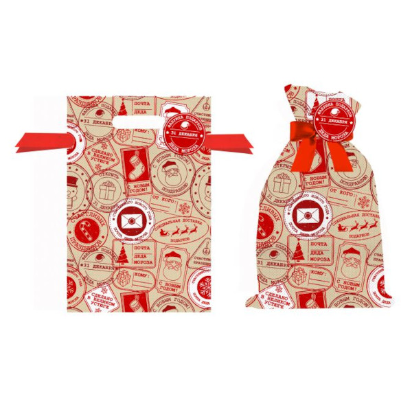 Мешочек 30*45см "Почта Дедушки Мороза. Штампы" неткан. 89568 Феникс-Презент.