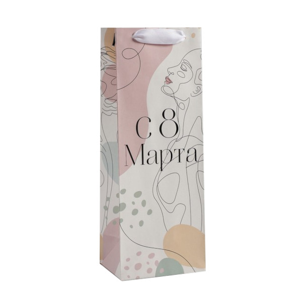 Пакет подарочный "С 8 Марта" 13*36*10см под бутылку 7030742 Дарите Счастье
