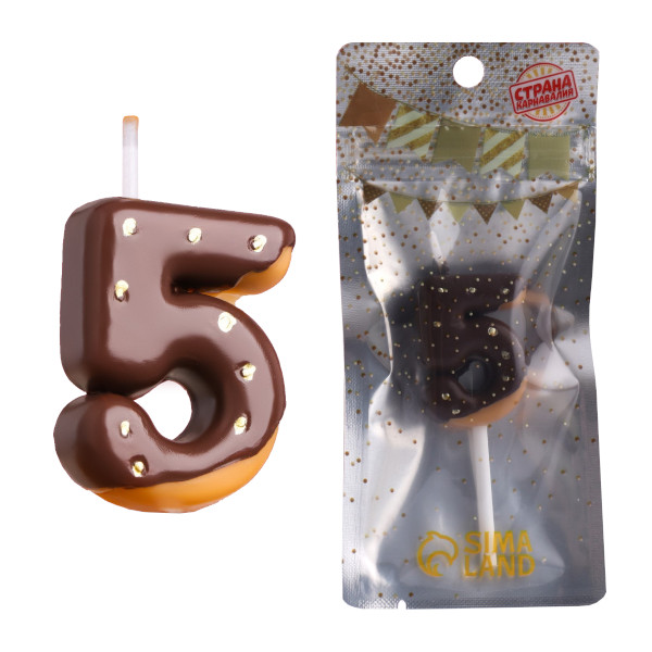 Свеча для торта "Цифра 5. Шоколадная глазурь" 3,8см 7003952 Страна Карнавалия