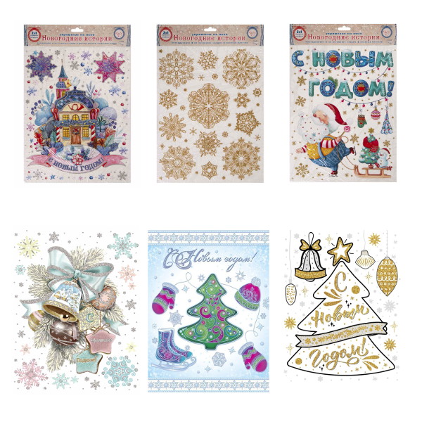 Новогоднее оконное украшение 30*38см, Ассорти 80043/81504/81321/81505/80047/31244/82530/31257
