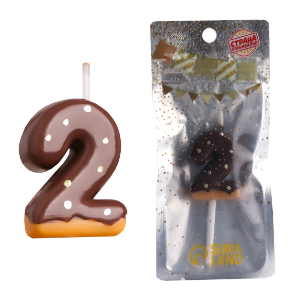 Свеча для торта "Цифра 2. Шоколадная глазурь" 3,8см 7003949 Страна Карнавалия